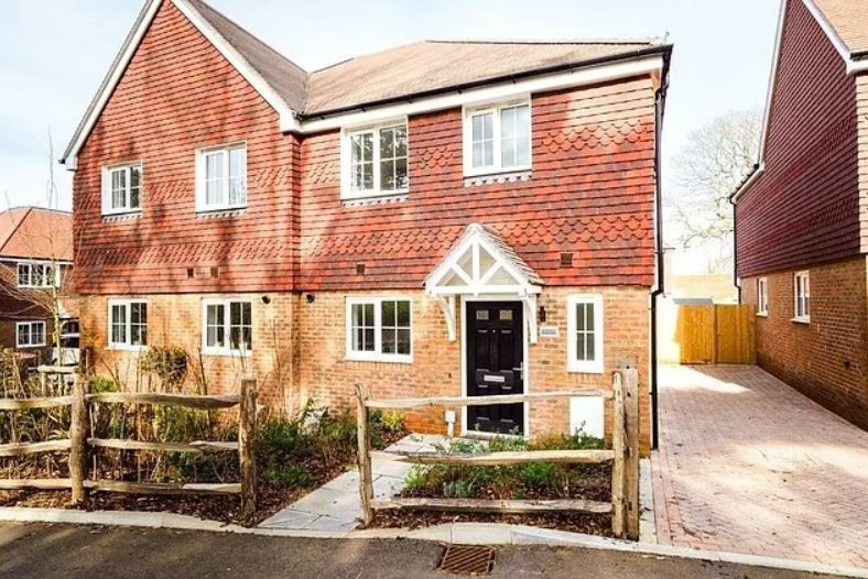 Yeni ama dikkat çekici olmayan üç yatak odalı, mütevazı büyüklükteki bu ev, Wadhurst’ün (Sunday Times’ın 2023 için Yaşanacak En İyi Yerler listesinin başında yer alan) kenarındaki küçük bir sitenin parçası.
