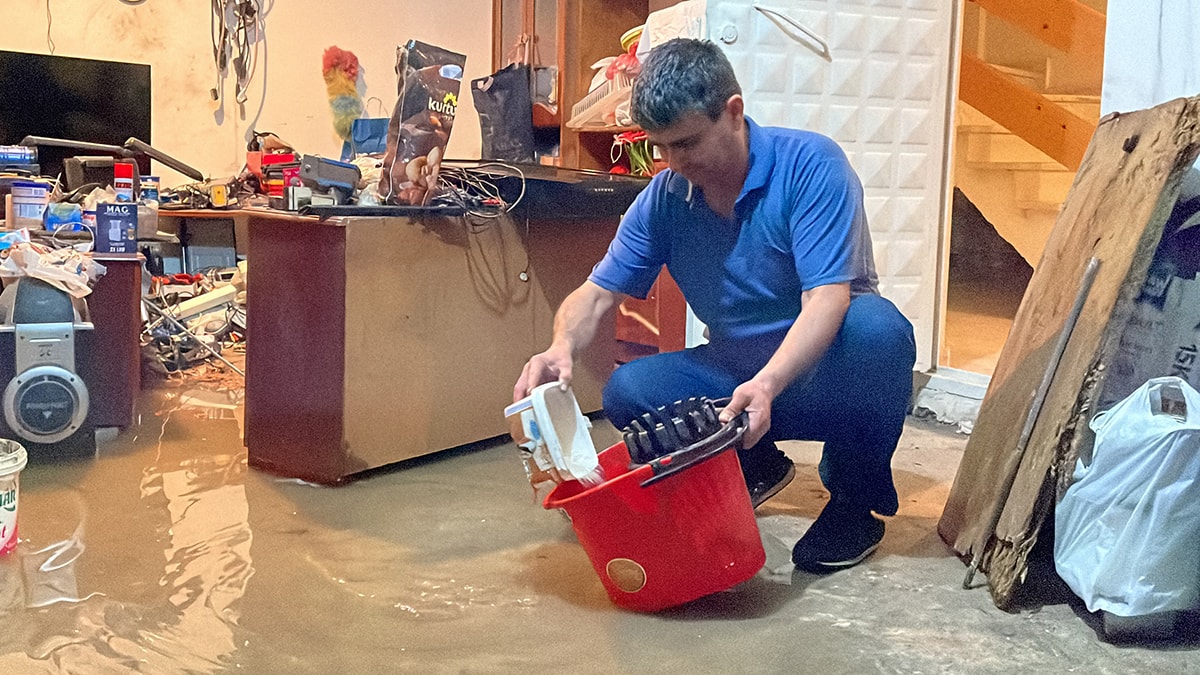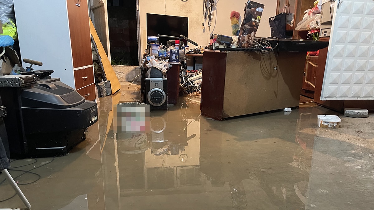 Yoğun yağış nedeniyle Şirintepe Mahallesi Ülkümen Sokak’ta bulunan bazı evlerin zemin katlarını ve garajlarını su bastı.