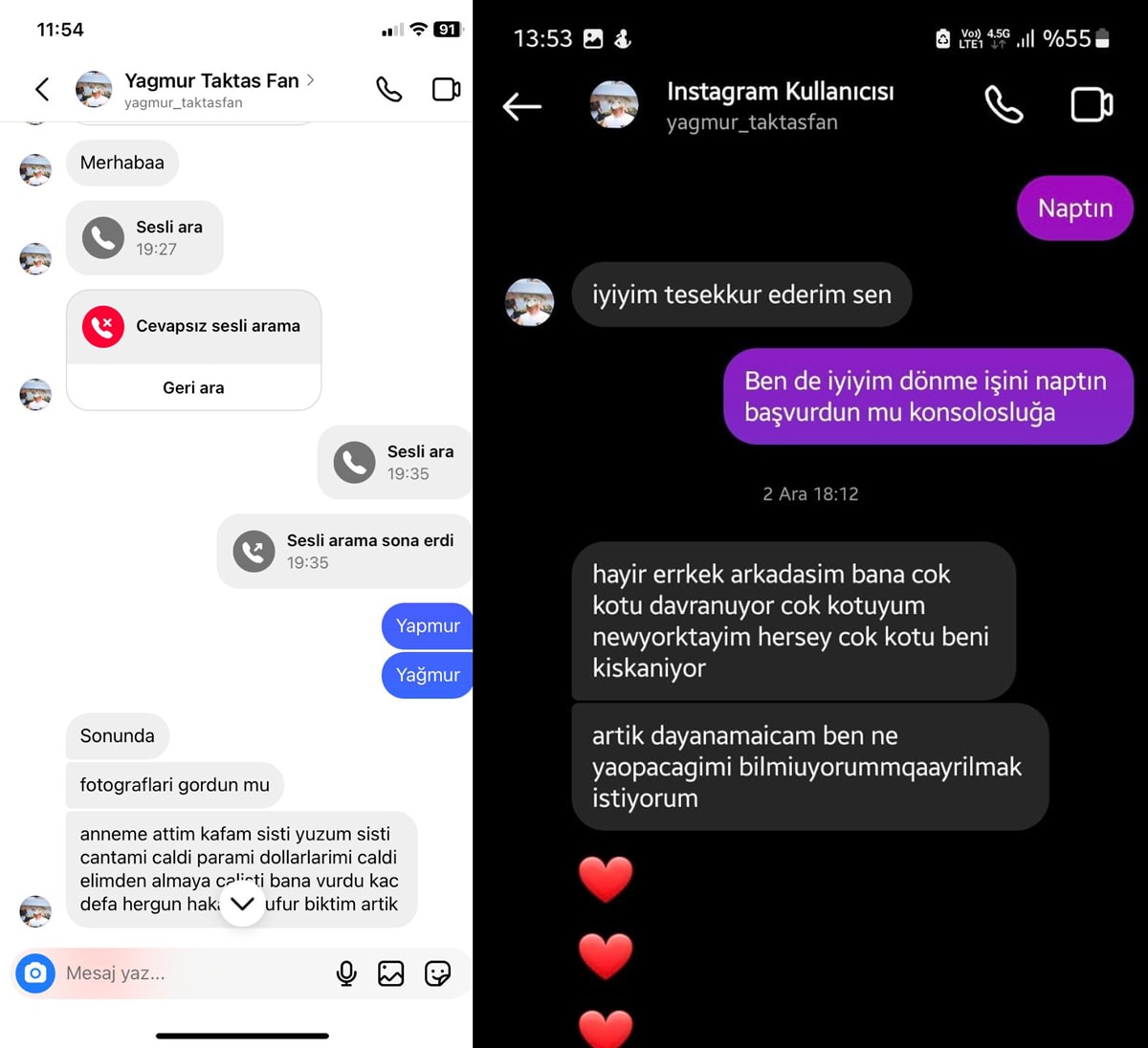 * Yağmur Hanım’ın kaşlarının tıraşlanması, saçlarının ön kısımlarının tıraşlanması gibi durumlar da söz konusu. Burada bir eziyet, bir işkence durumu söz konusu. Açık konuşmak gerekirse bu konuda bizim bir şüphemiz yok. Bununla beraber elimizdeki bilgi ve belgelerden zaten Yağmur’un Amerika’dayken vefat etmeden önce parasına, çantasına, pasaportuna el konulmuş olduğu ve şüpheli şahıs tarafından Türkiye’ye dönmemesi için zorla tutulmuş olduğu anlaşılıyor. Yağmur Hanım’ın mesajlaşmalarından, belgelerinden bunu da anlayabiliyoruz. Zaten bu zorla tutulma akabinde hürriyeti tahdit neticesinde Yağmur hanım maalesef şu anda aramızda değil. Maalesef kaybettik. Bununla alakalı zaten bilgi ve belgeleri de savcılığımıza sunduk.”
