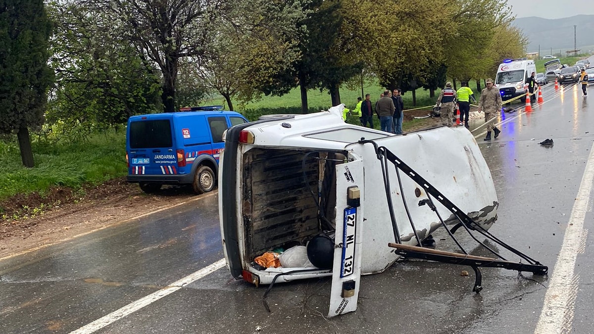 Nurdağı’nda Şükrü Yıldız (42) yönetimindeki 03 ACY 234 plakalı kamyonet ile Ökkeş Kırık (53) idaresindeki 27 NL 132 plakalı otomobil çarpıştı. Otomobil ikiye bölünürken, kamyonet yol kenarındaki tarlaya devrildi. İhbarla bölgeye çok sayıda ekip gönderildi. Kazada Ökkeş Kırık ile Zeynep Kırık (50) hayatını kaybetti; Şükrü Yıldız, Ökkeş Abuş, Nesrin Abuş, İkra Abuş ve Oğuzhan Abuş yaralandı. Yaralılar, ambulanslarla çeşitli hastanelere kaldırıldı.