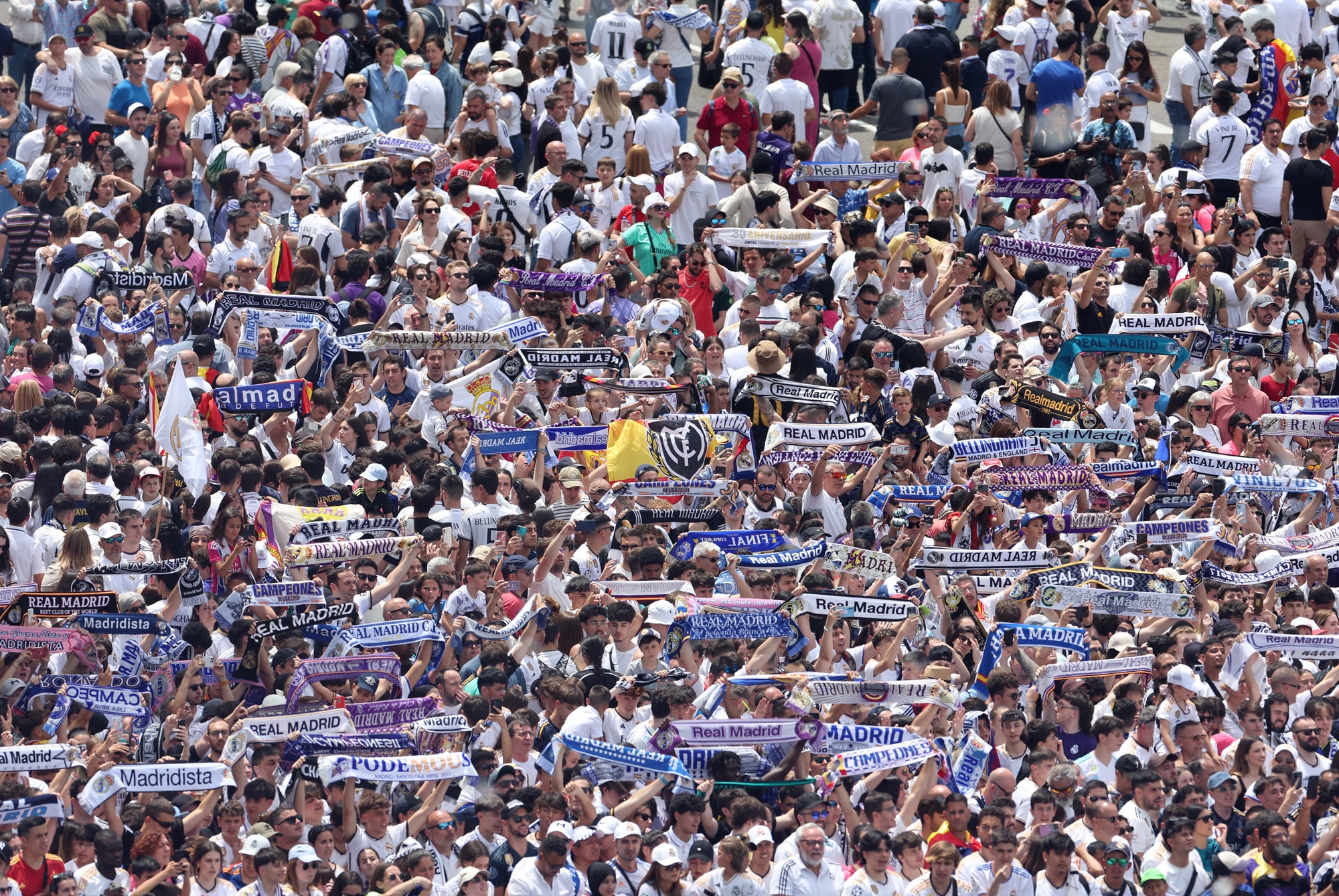 Sol Meydanı’nda yer alan Madrid özerk hükümet binası balkonunda yapılan konuşmalarda kaptan Nacho ve teknik direktör Ancelotti ile Luka Modric, Jude Bellingham, Antonio Rüdiger gibi bazı futbolcular 1 Haziran’da Wembley Stadı’nda Borussia Dortmund’a karşı oynanacak Şampiyonlar Ligi finalini kazanarak, taraftarlara kupayla dönme sözü verdi.