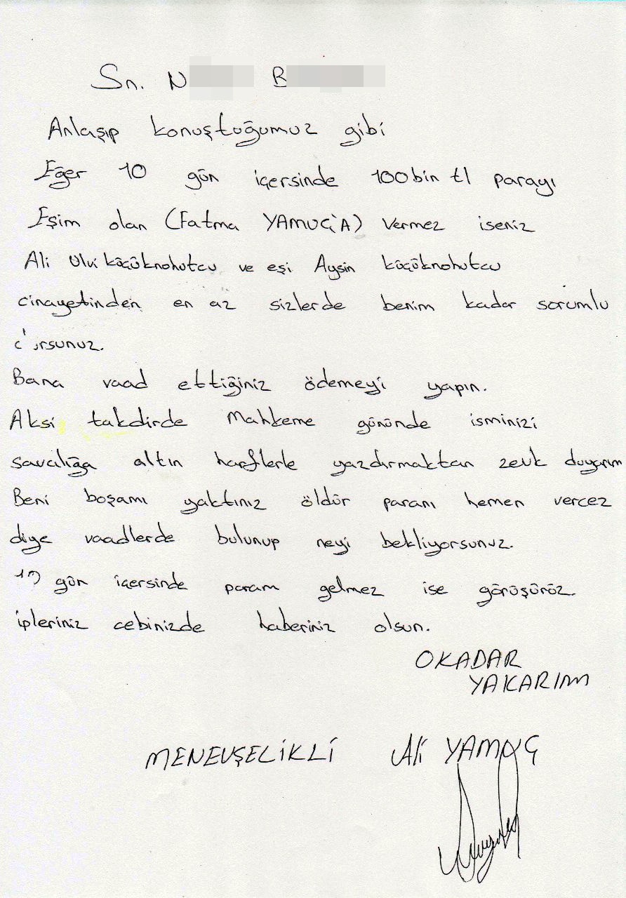 AZMETTİRİCİ İDDİASINDA MEKTUPTAKİ İSMİ HATIRLATTI