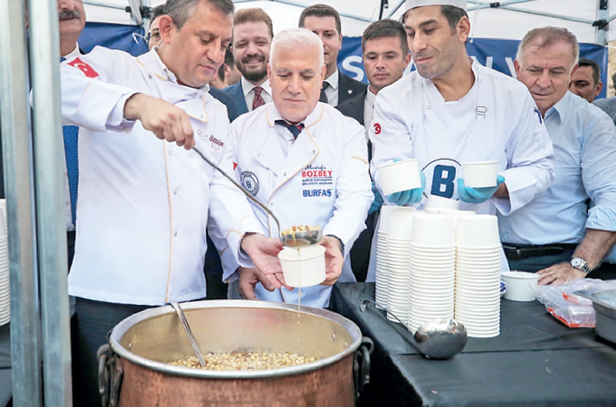 Özgür Özel Bursa Ulu Cami’nin bahçesinde halka aşure dağıttı.