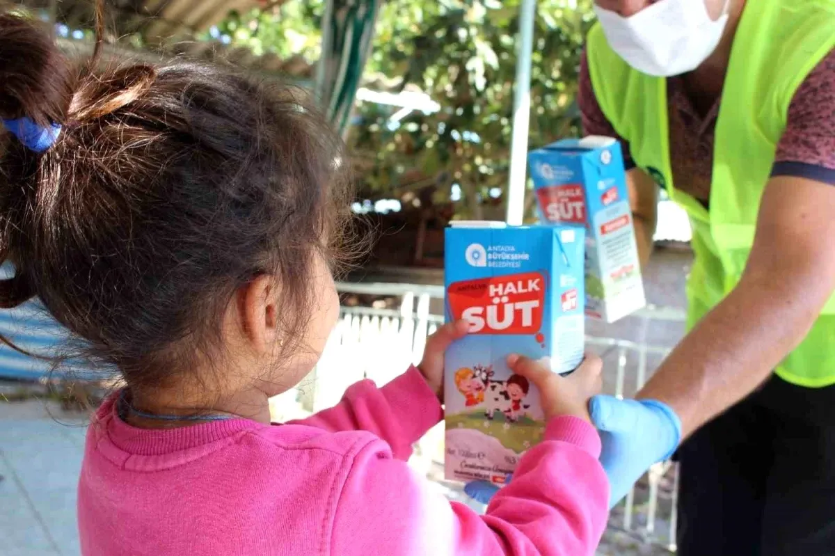 Antalya Büyükşehir Belediyesi, çocuklara halk süt ve halk mama veriyor, ayrıca halk et ve halk ekmek projeleri ile de vatandaşa destek olunuyor.