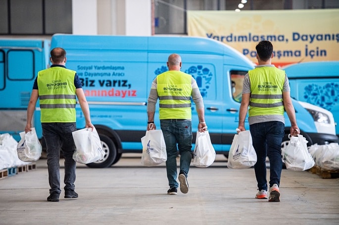 İzmir Büyükşehir Belediyesi ihtiyaç sahibi emeklilere maddi destek, gıda yardımı, fatura ödenmesi gibi programlar düzenliyor.