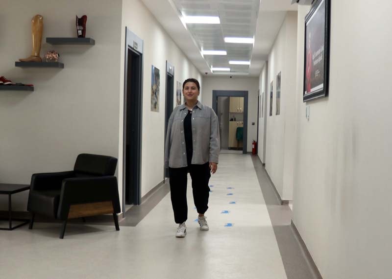 Depreme Kahramanmaraş’ta klinik olarak da kullandığı evinde yakalandığını anlatan Zeynep Büyükardıç, “İki gün enkaz altında kaldım. Depremde sağ kol ve sağ bacağımı kaybettim. Tedavi sürecinde 9 ay hastanede kaldım. Hastaneden çıktıktan 2 ay gibi bir süre sonra burada işe başladım.