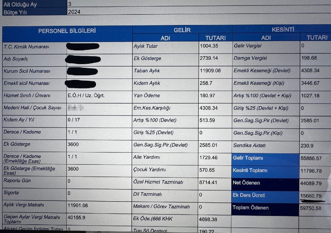 Kocaeli’nin Gölcük ilçesindeki Saraylı Ortaokulu’nda görev yapan bazı öğretmenler, sistem üzerindeki e-bordroları ile maaş ödeme dekontlarında tutarsızlık olduğunu tespit etti. İddiaya göre, ek ders ücretlerini karşılaştıran öğretmenler, e-bordro üzerinde görünen ek ders ücretinin hesaplarına yatan ücretten yaklaşık 3 kat daha fazla olduğunu fark etti. Bunun üzerine geriye dönük yapılan kontrollerde, öğretmenlerin ek ders ücretlerinde yaklaşık 4 yıldır bu durumun yaşandığı ve fazla olan miktarın farklı banka hesaplarına yatırıldığı tespit edildi.