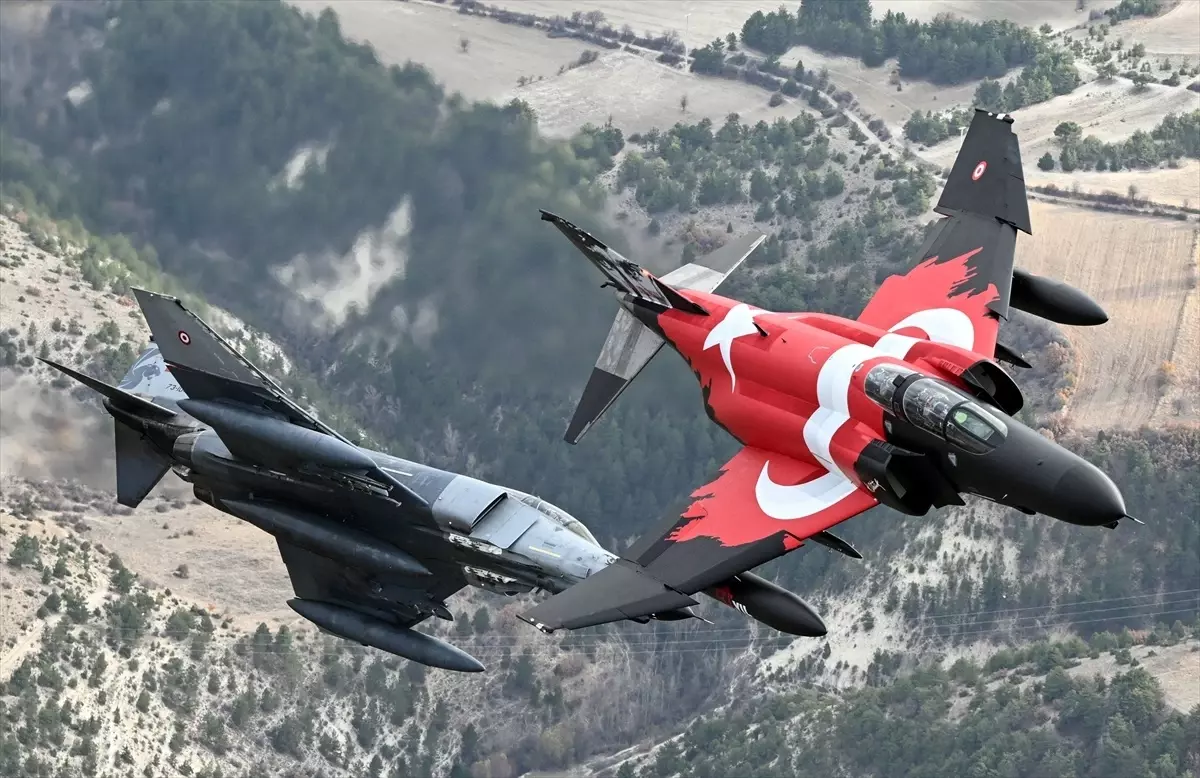 “F-4E Phantom” uçaklarının Hava Kuvvetleri Komutanlığının envanterine girişinin 50’nci yılı etkinlikleri kapsamında “yer hedeflerine taarruz eğitimi” uçuşu havadan fotoğraflandı.