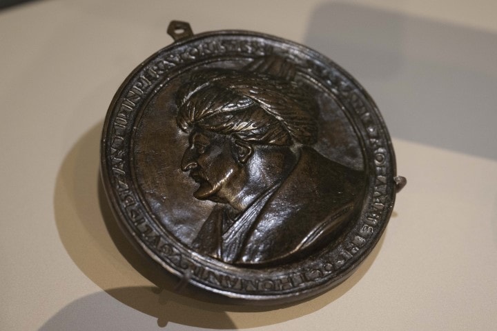 VA’da Fatih Sultan Mehmet’in tasvir edildiği tek eser Bellini’nin tablosu değil. Sergide, İstanbul ziyareti sırasında Fatih’i yakından görüp portresini çizme şansı yakalayan Bellini’nin bir de Sultan Mehmet’i tasvir ettiği kabartmalı bronz madalyonu bulunuyor.