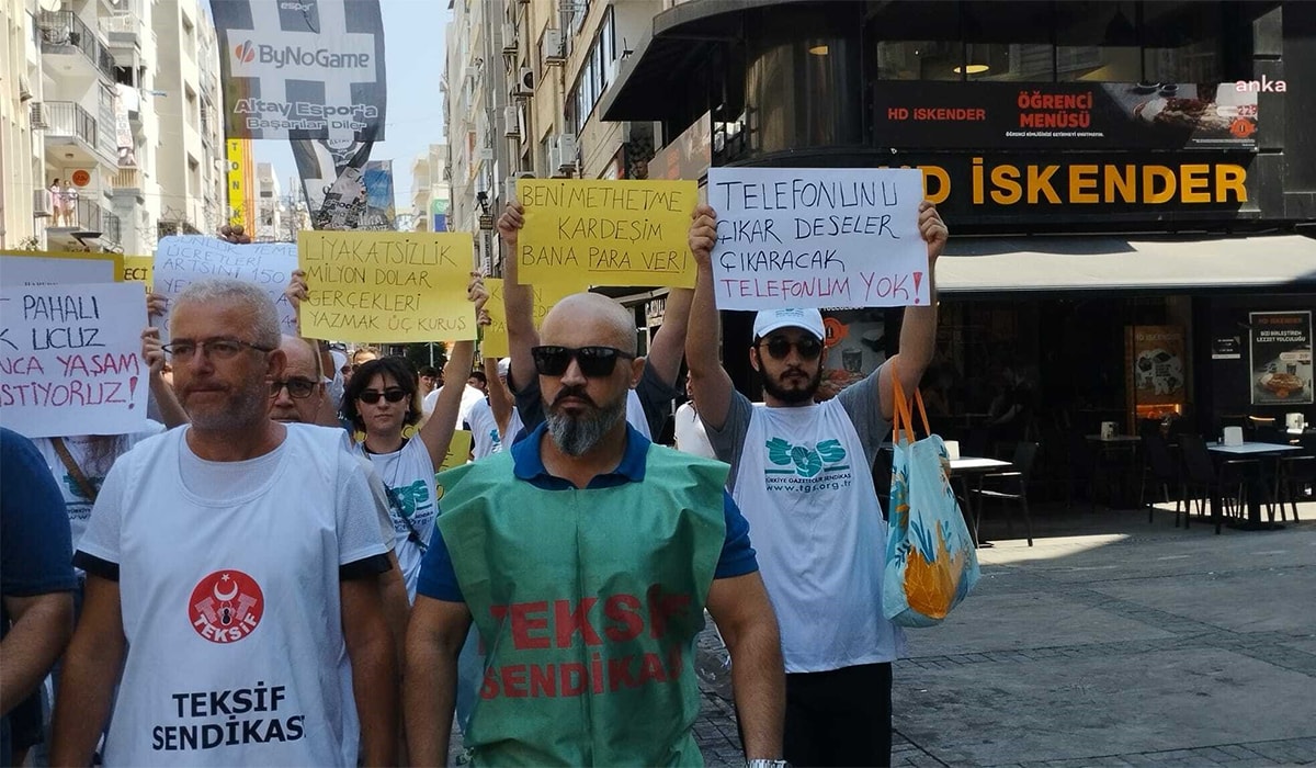 Artan yoksulluk ve hayat pahalılığı milyonlarca vatandaşı açlık sınırının altında yaşamaya mecbur bırakırken, İzmirli gazeteciler de ‘Geçinemiyoruz’ eylemi yaptı. Türkiye Gazeteciler Sendikası(TGS) İzmir Şubesi’nin düzenlediği eylemde gazeteciler, açlık sınırının da altında kalan maaşları protesto etti.