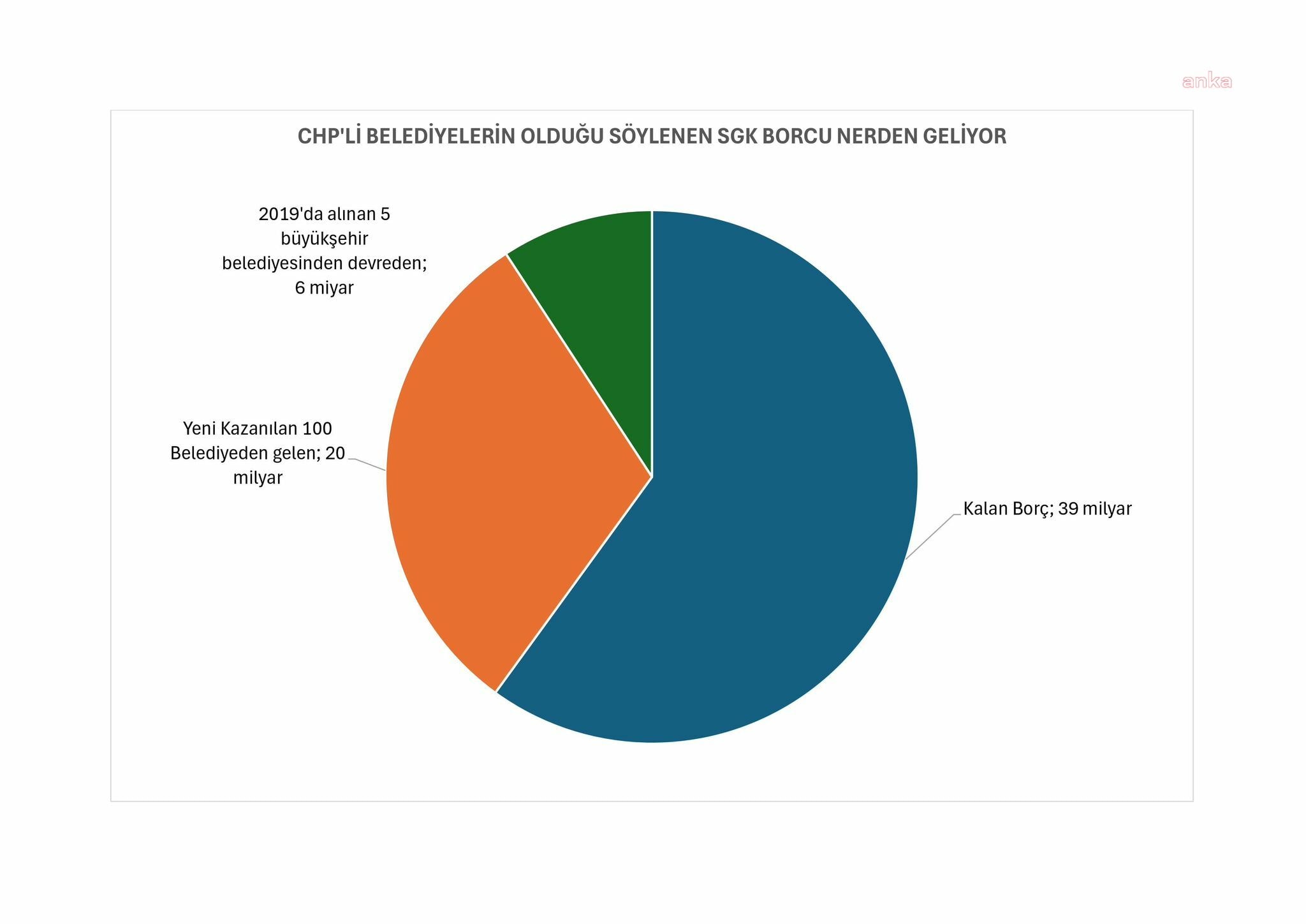 “Sayıştay raporlarında yıllardır SGK’yı alacaklarını tahsil etmek için çalışmamakla suçlarken, SGK’nın Haziran 2024 sonu itibarıyla belediyelerden olan alacağı 96 milyar lira, bu rakam haziran 2024’te 750 – 800 milyar liraya çıktığı tahmin edilen SGK alacaklarının yüzde 12-13’ü kadar bir büyüklük oluşturuyor. Eğer iktidar gerçekten SGK’nın alacaklarını tahsil etmek istiyorsa, belediyelerden önce borcun geri kalan yüzde 87- 88’inin üzerine gitmeliydi.