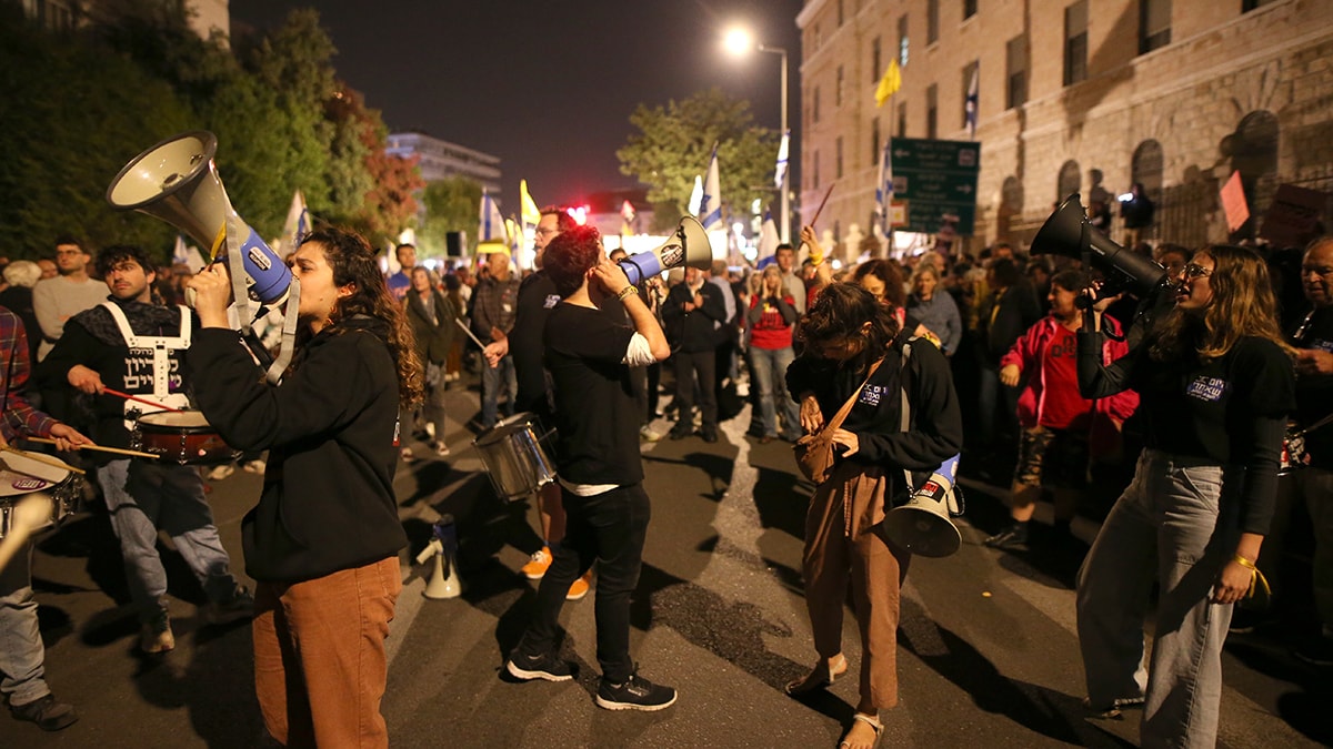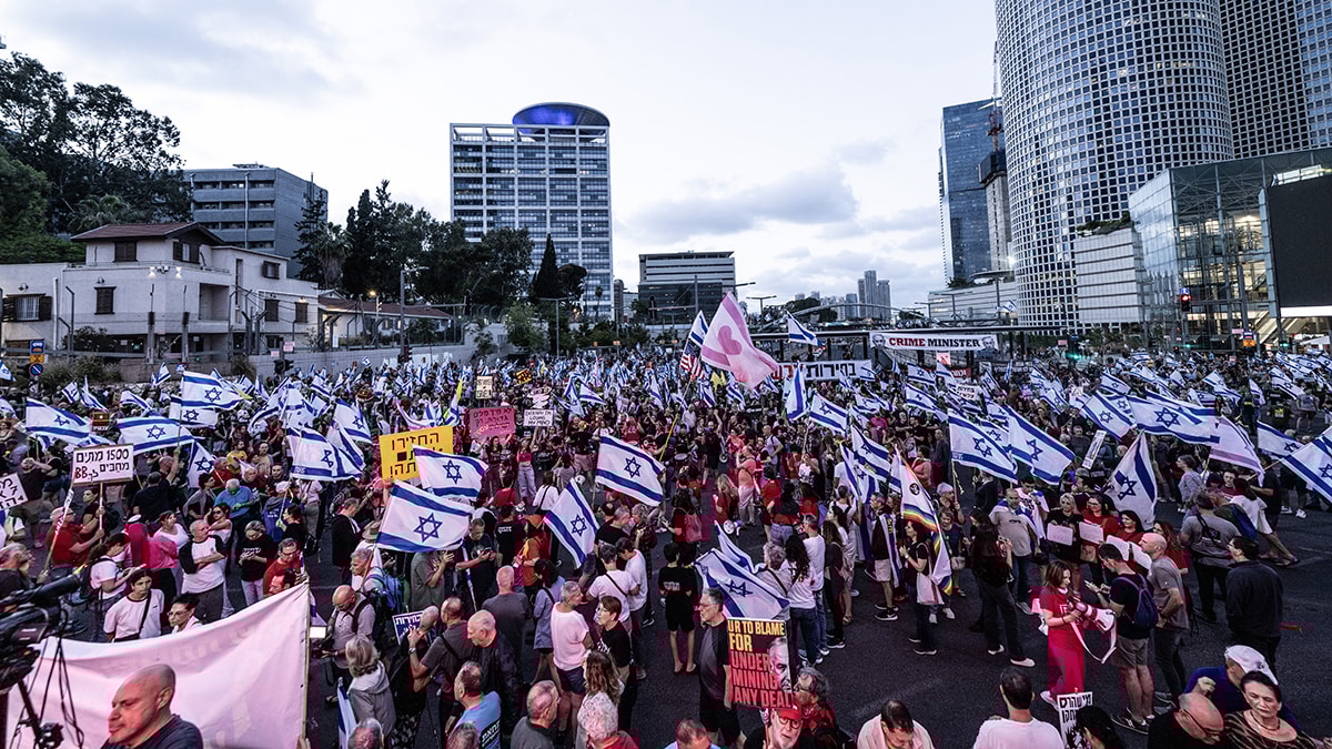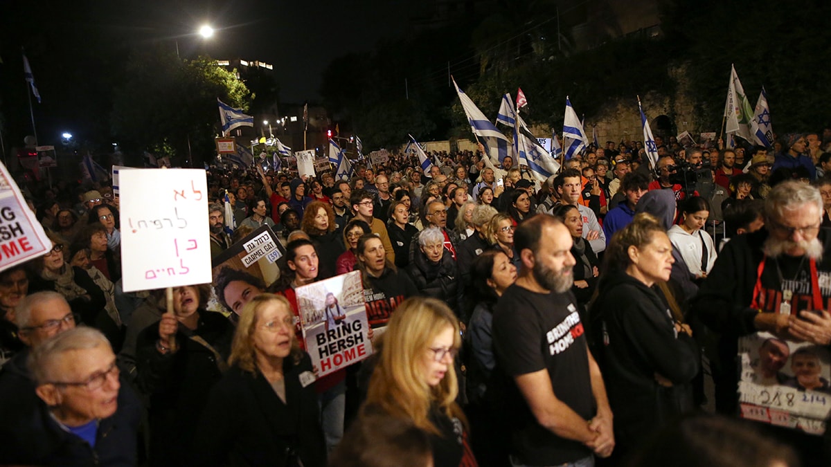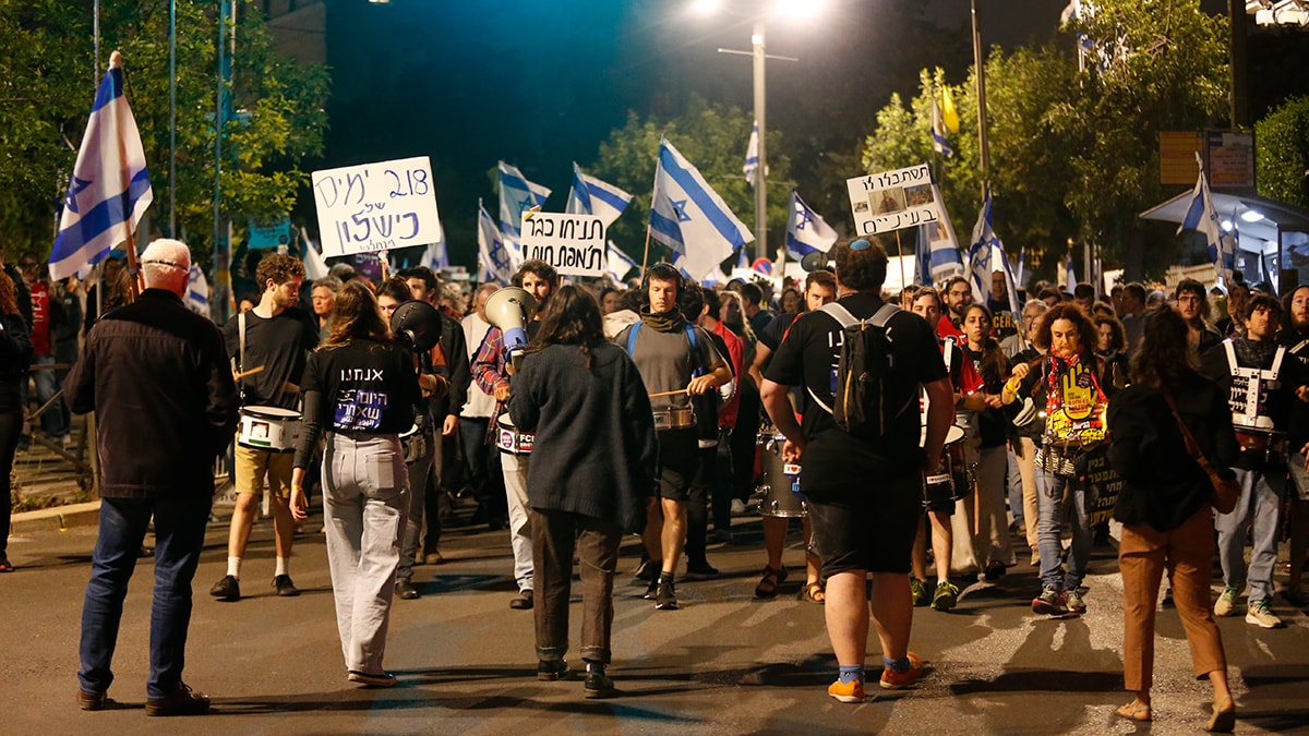 İsrail bayrakları taşıyan binlerce protestocu, Başbakan Netanyahu ve hükümetindeki siyasetçiler aleyhinde pankart, afiş ve dövizler taşıdı, caddede kurulan platformda hükümeti eleştiren konuşmalar yapıldı.