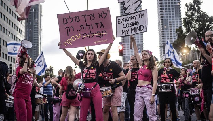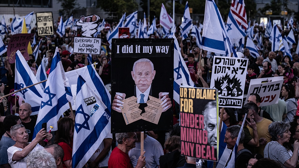 Hükümet karşıtı gruplara katılan on binlerce kişi, Gazze’ye saldırıların sonlandırılmaması ve esirlerin geri getirilmesi konusunda siyasi iradenin kayıtsızlığını eleştirerek, ülke tarihinin “en sağcı hükümetinin” istifasını ve erken seçim talep ettikleri protestolarını yineledi.