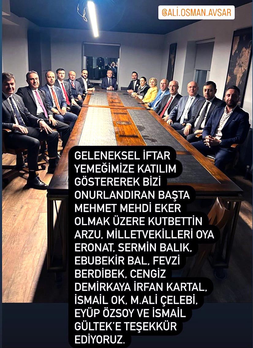 Avşar kardeşlerin, eski Tarım Bakanı Mehdi Eker, İçişleri Bakan Yardımcısı ve eski Diyarbakır Valisi Mühir Karaloğlu, AKP Diyarbakır eski Milletvekilleri Ebubekir Bal, Oya Eronat, Fevzi Berdibek’in de aralarında bulunduğu çok sayıda AKP’li bürokrat ve milletvekiline kendi Holding’lerinde verdikleri iftar yemeği ile ilgili paylaşımlarda bulunmaları dikkat çekti.