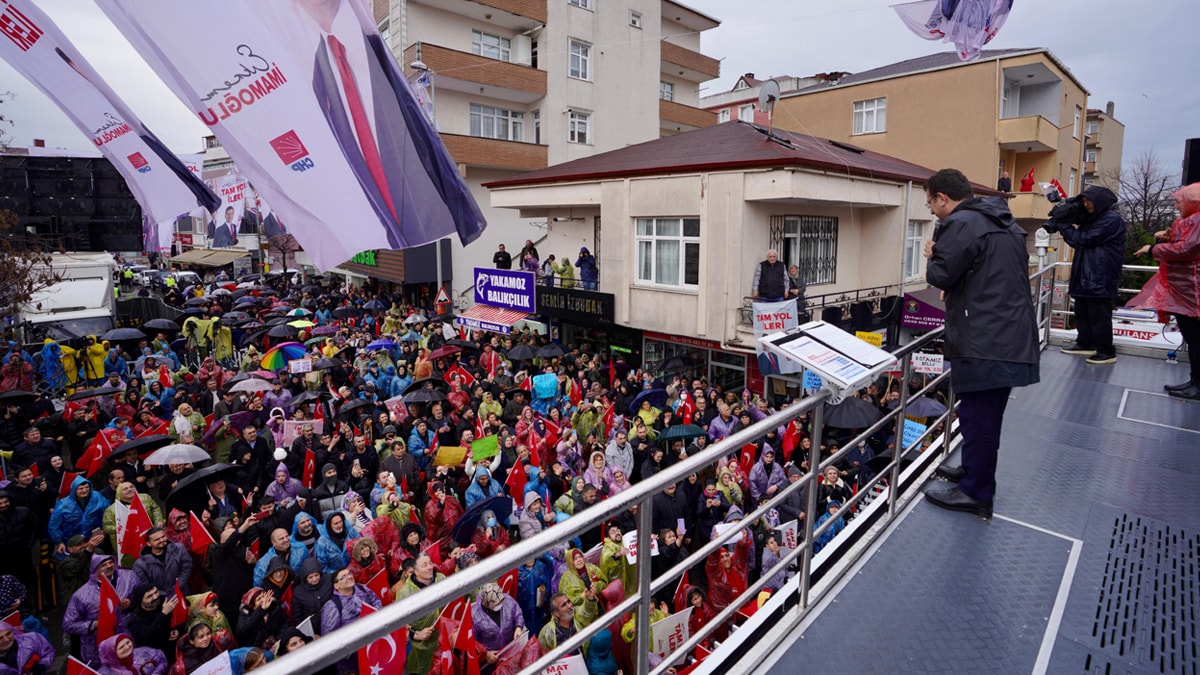 İstanbul Büyükşehir Belediye (İBB) Başkanı ve CHP İstanbul Adayı Ekrem İmamoğlu, Şile’nin ardından Tuzla’da da yoğun yağmur yağışı altında halk buluşması gerçekleştirdi. CHP’nin Tuzla Belediye Başkan Adayı Eren Ali Bingöl ile yağmura rağmen Tuzla Şifa Mahallesi’ndeki dolduran vatandaşlara seslendi. Seçime 5 gün kaldığını söyleyen İmamoğlu cumhurbaşkanı ve bakanların seçim kampanyasına katılmasını eleştirmeye devam etti.