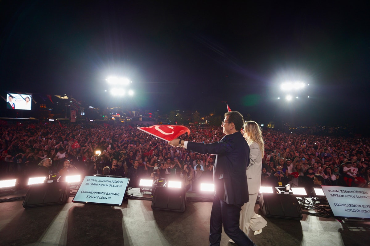 İstanbul Büyükşehir Belediyesi (İBB), 23 Nisan Ulusal Egemenlik ve Çocuk Bayramı’nı kentin farklı noktalarında gün boyu süren organizasyonlarla kutladı. Bu programların birçoğuna katılan ve 23 Nisan coşkusuna ortak olan İBB Başkanı Ekrem İmamoğlu, bayramın finalini Üsküdar Meydanı’nı dolduran İstanbullularla birlikte yaptı. Eşi Dilek Kaya İmamoğlu’yla birlikte sahneye çıkan İmamoğlu’na, 15 farklı ülkeden gelen çocuklar da folklor kıyafetleriyle eşlik etti.