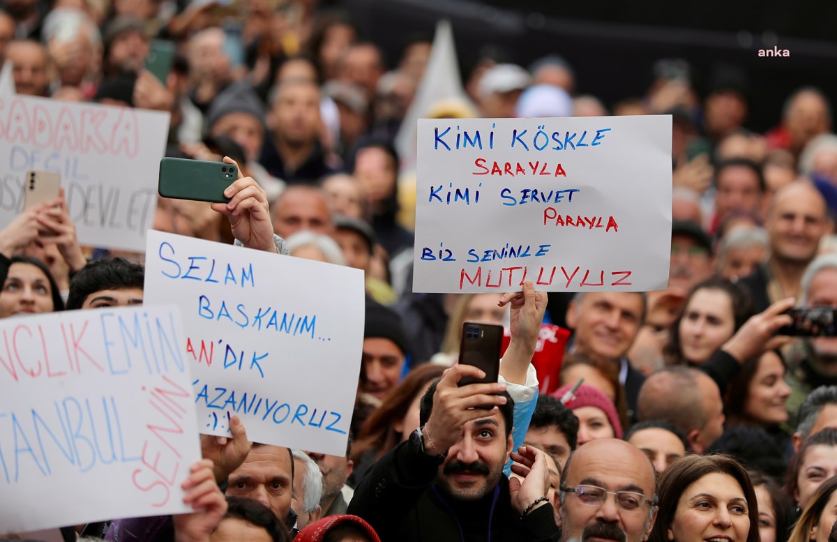 Kalabalığın ellerindeki dövizleri tek tek okuyan İmamoğlu, şunları söyledi: