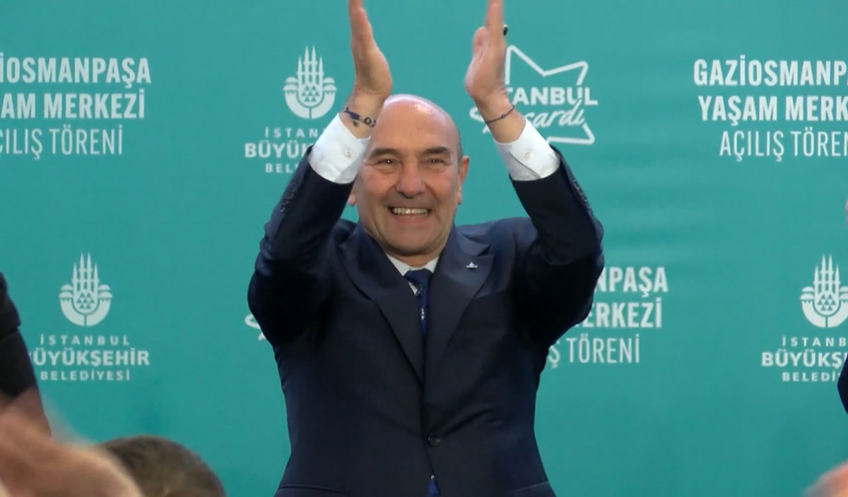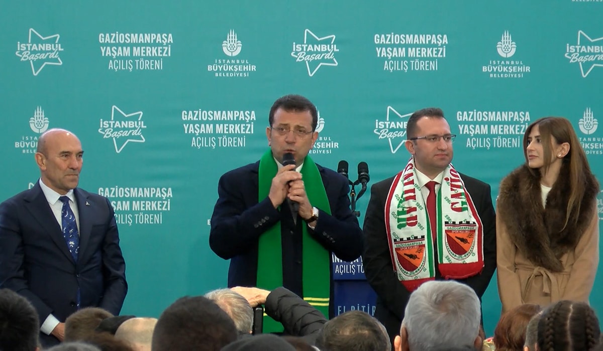 İmamoğlu konuşması sırasında sahnede yanına İzmir Büyükşehir Belediye Başkanı Tunç Soyer ve Gaziosmanpaşa Belediye Başkan Adayı Hakan Bahçetepe’yi davet etti.