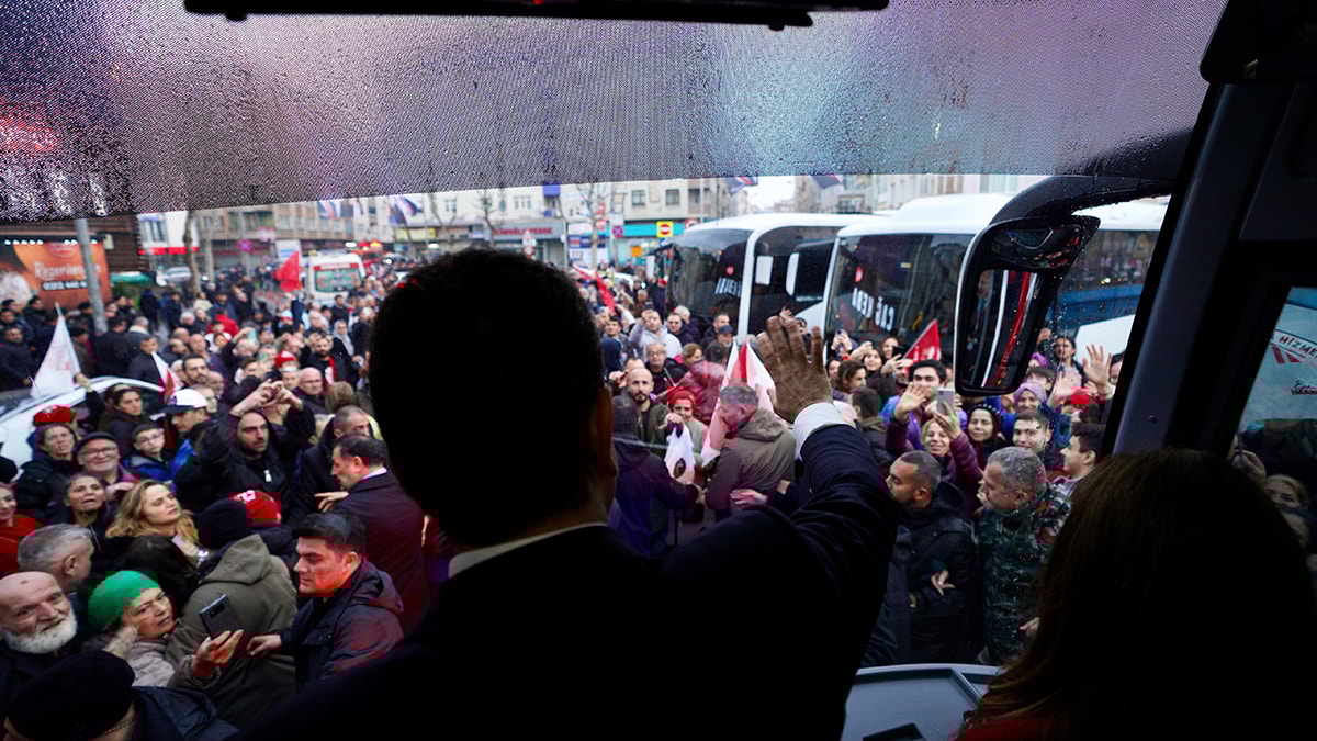 Seçim otobüsünden vatandaşları selamlayan üçlü, yurttaşların yoğun ilgisiyle karşılaştı. Şirinevler Şehit Yarbay Cesur Parkı’nda, yağmur altında gerçekleştirilen buluşmada, sırasıyla; Emecan, Çelik ve İmamoğlu halka hitap etti.