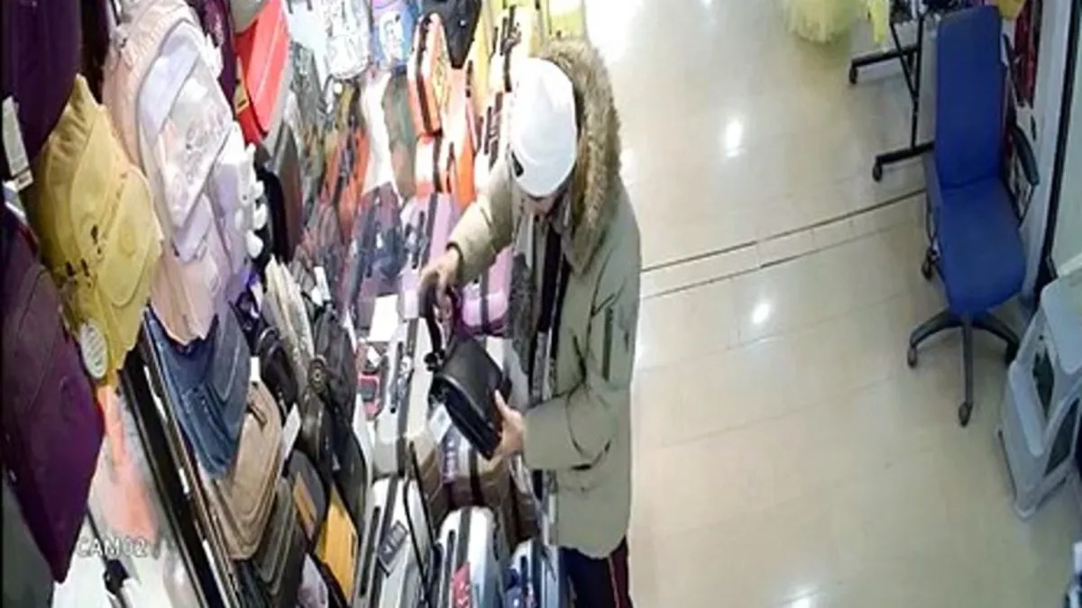 İş merkezindeki çanta dükkanına gelen kimliği belirsiz bir kişi, bir süre çantaların önünde dolaştıktan sonra 2 bin lira değerindeki deri çantayı eline aldı.