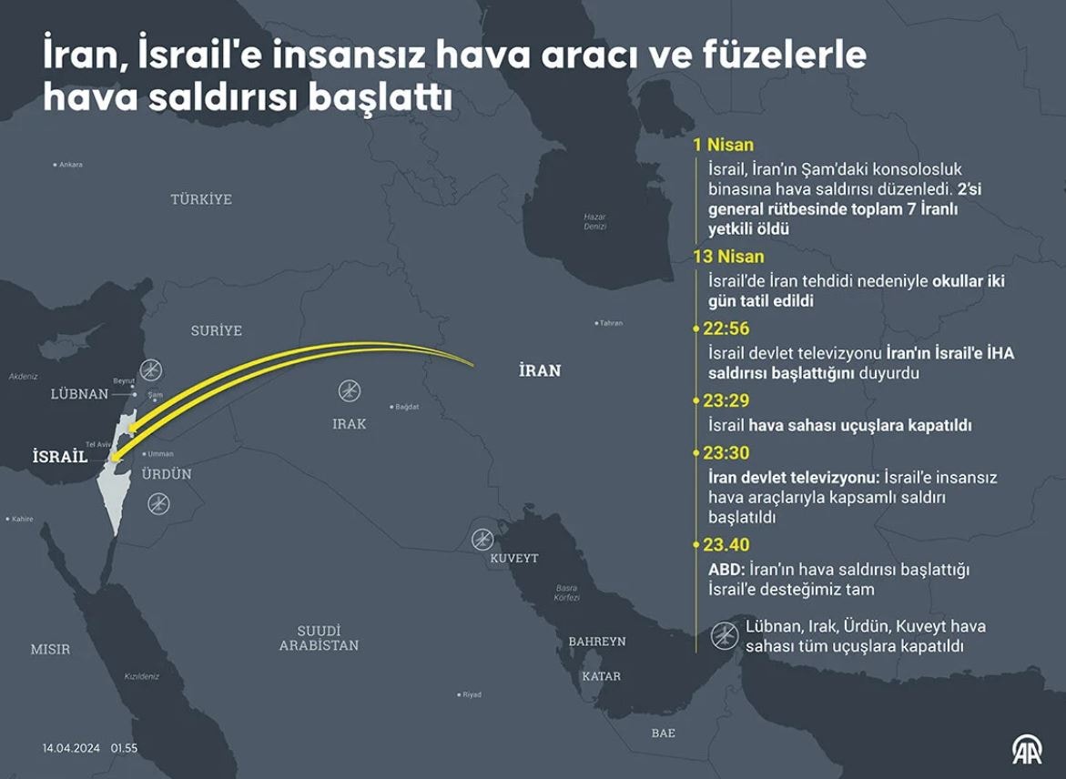İran, İsrail’in konsolosluk saldırısının ülkesinin topraklarına saldırı anlamına geldiğini ve misillemede bulunacaklarını duyurmuştu. İsrail ise İran’ın saldırısına karşılık vereceğini bildirmişti.