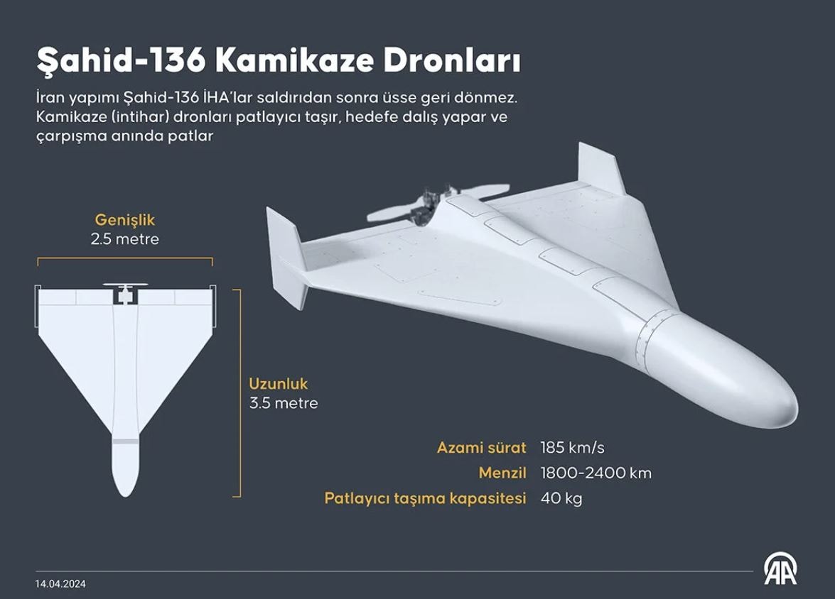 İran, dün İsrail’e yüzlerce kamikaze insansız hava aracı, balistik ve seyir füzesiyle saldırı başlatmıştı.