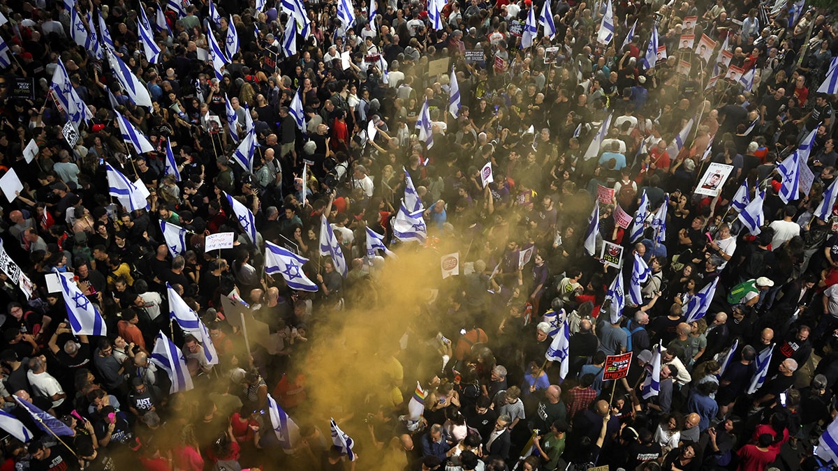 Hükümet karşıtı gruplara katılan on binlerce kişi, Gazze’ye saldırıların sonlandırılmaması ve esirlerin geri getirilmesi konusunda siyasi iradenin kayıtsızlığını eleştirerek, ülke tarihinin “en sağcı hükümetinin” istifasını ve erken seçim talep ettikleri protestolarını yineledi.