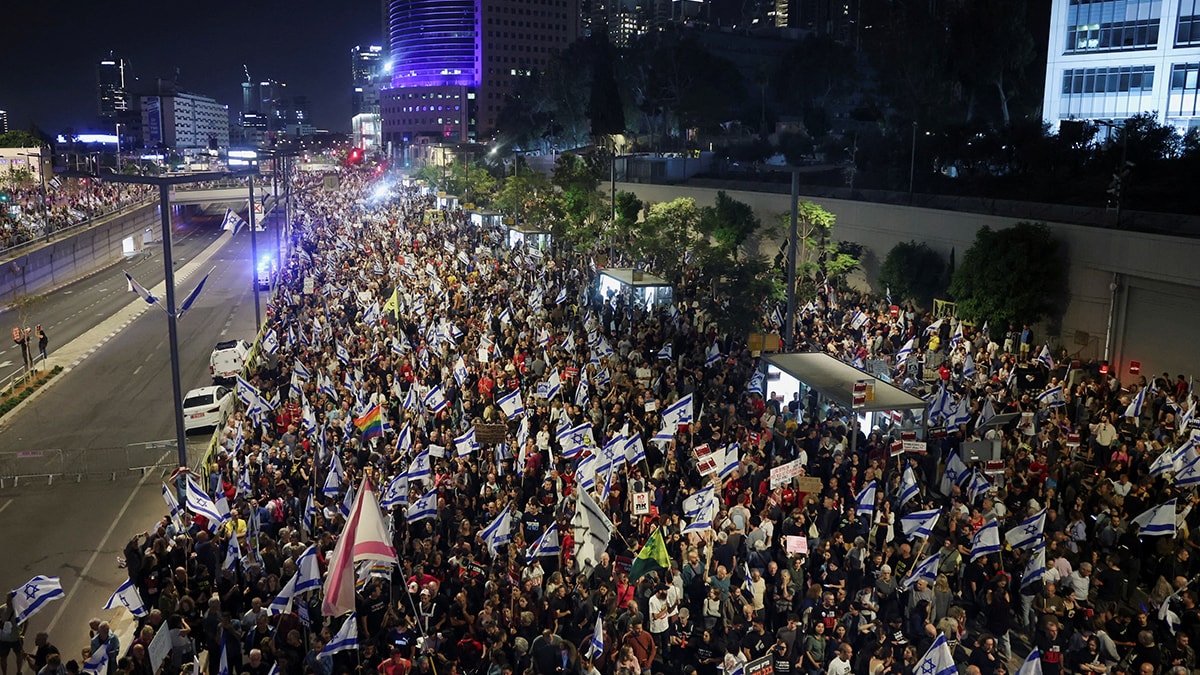 Protestoların merkezi, on binlerce İsraillinin akşam saatlerinde toplandığı başkent Tel Aviv’de yer alan, Netanyahu hükümetinin yargı düzenlemelerine karşı yapılan gösterilerde sembolleşen, polisin demir bariyerlerle kapattığı Kaplan Caddesi oldu.