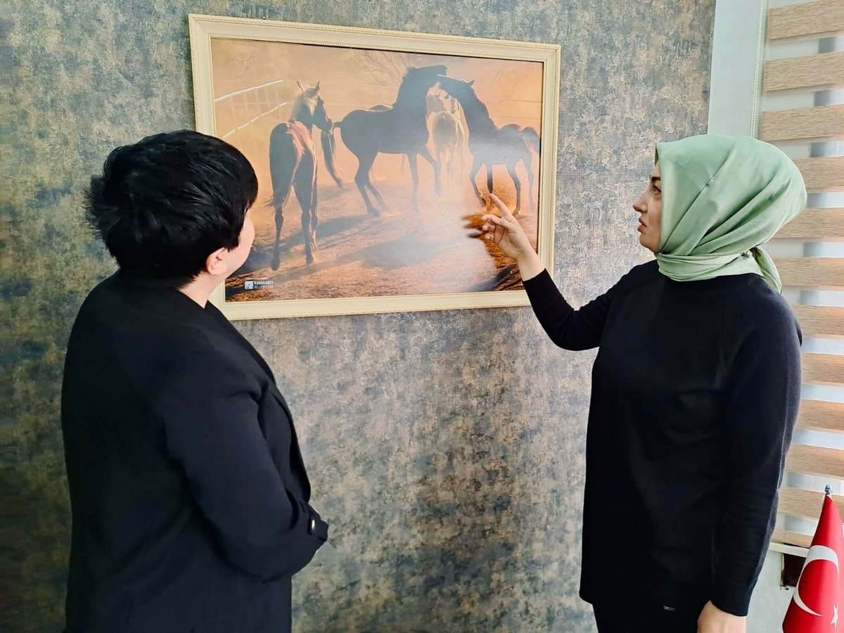 Ayşe Ateş ile eşinin ofisinde buluştuk. Duvardaki tablo Sinan Ateş’in atlara sevgisinin göstergesi.
