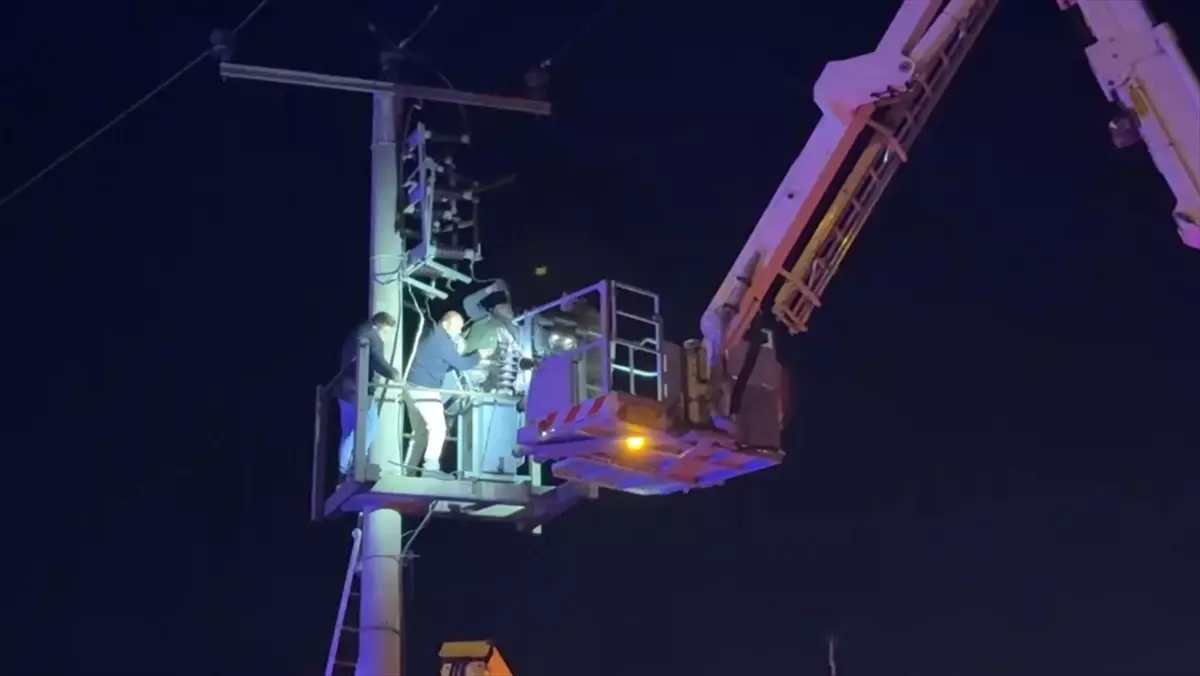 İtfaiye ekipleri elektriğin kesilmesinin ardından direkteki yaralı işçiyi indirdi.