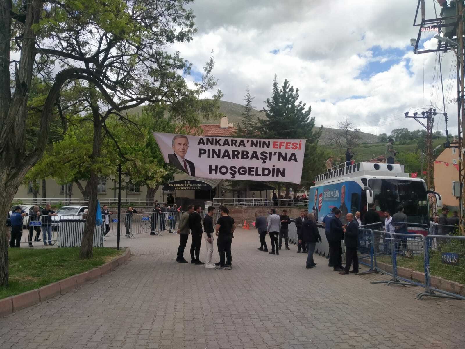 Miting alanına girişte, ”Ankara’nın efesi Pınarbaşı’na hoşgeldin” ve ”Başkent’in başkanı Pınarbaşı seninle gurur duyuyor” yazılı pankartlar dikkati çekti. Mitinge gelen vatandaşlar ”Mansur Başkan” sloganları attı.