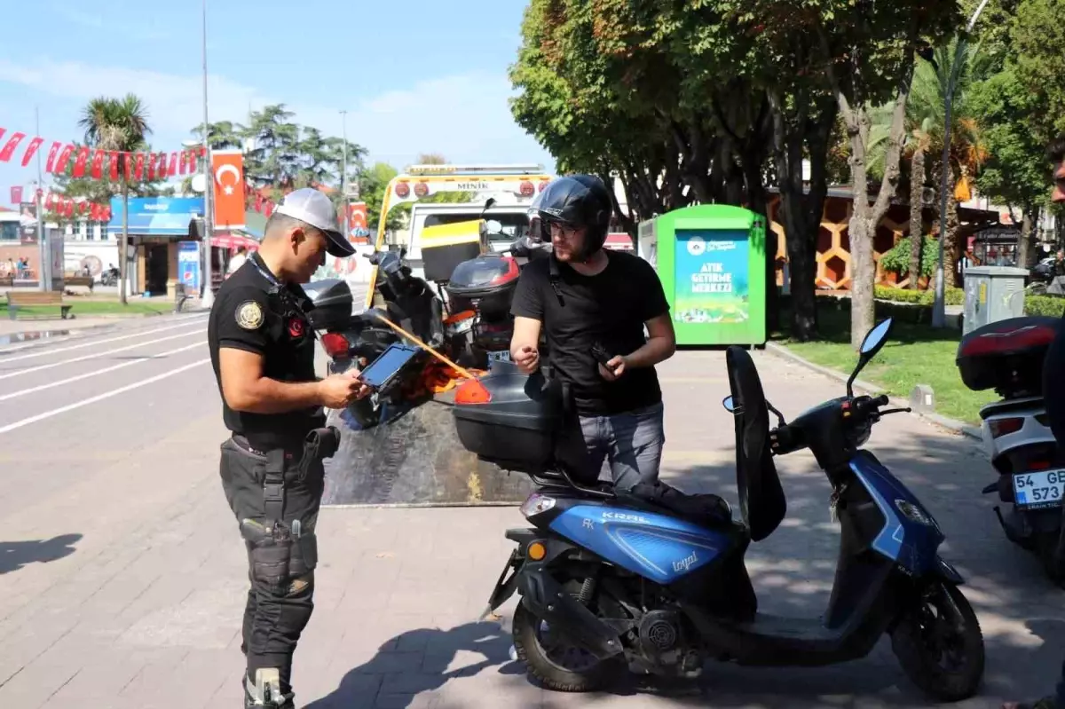 Sakarya İl Emniyet Müdürlüğü’ne bağlı ekipler, şehir genelinde halkın huzur ve güvenliği için uygulamalarını sürdürüyor. Bu çerçevede İl Emniyet Müdürlüğü Trafik Denetleme Şube Müdürlüğü’ne bağlı ekipler denetimlerini artırdı. Adapazarı ilçesi Atatürk Bulvarı ve çevresinde motosikletli sürücülere yönelik uygulama gerçekleştiren Motosikletli Şahin ekipleri trafikte aykırı olan sürücülere adeta göz açtırmadı. Dron destekli yapılan denetimlerde; 56 motosiklet sürücüsüne kask takmadan araç kullanmak, sürücü belgesiz araç kullanmak, abart egzozlu araç kullanmak, tescil plakasını takmadan araç kullanmak gibi muhtelif maddelerden toplamda 210 bin 596 TL idari para cezası uygulandı. 11 motosiklet trafikten men edilerek yediemin otoparkına çekildi.