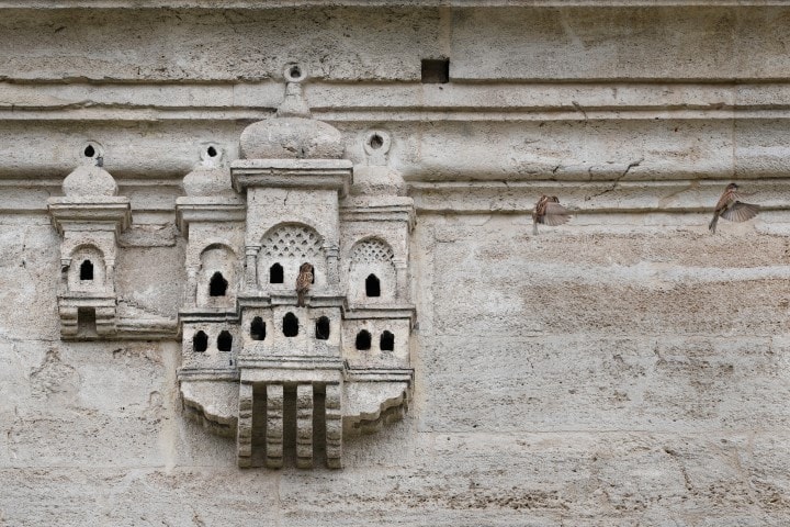 Serçe, güvercin ve sığırcık gibi birçok kuş türünün barınması için inşa edilen kuş sarayları, mimari eserlerin özellikle güneş gören ve rüzgar almayan kısımlarına yapılıyordu.