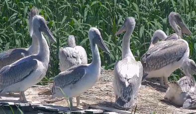Tepeli pelikan yavruları Manyas Kuş Cenneti’nden uçmaya başladı
