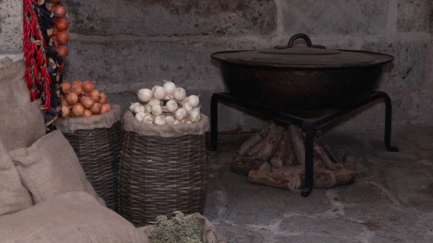 Kostümü ve tipik özellikleriyle dönemin karakteristik özelliklerini yansıtan ve mutfakta yemek hazırlıyormuş gibi duran silikon heykel de ziyaretçileri tarihte yolculuğa çıkarıyor.