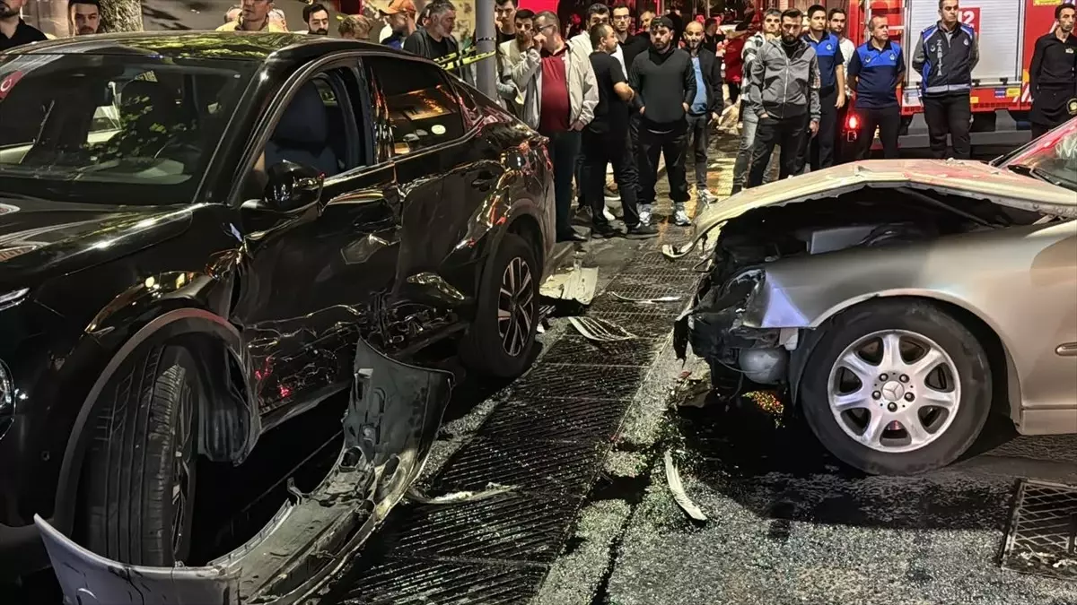 Çarpmanın etkisiyle sürüklenen park halindeki araç ile yanındaki restoran arasında sıkışan 1 kişi ile araçlardaki 3 kişi yaralandı.