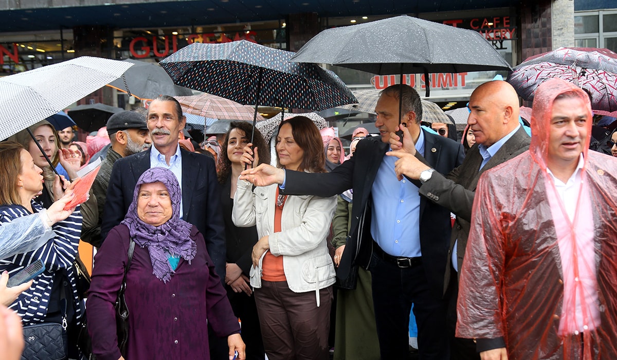 “Türkiye’nin dört bir yanında gelen binlerce öğretmenin sesine ses olmak, onlara destek vermek için buradayız. Biraz önce burada büyük bir dolu fırtınası oldu. Tek bir öğretmenimiz bile bu fırtınadan kaçmadılar.