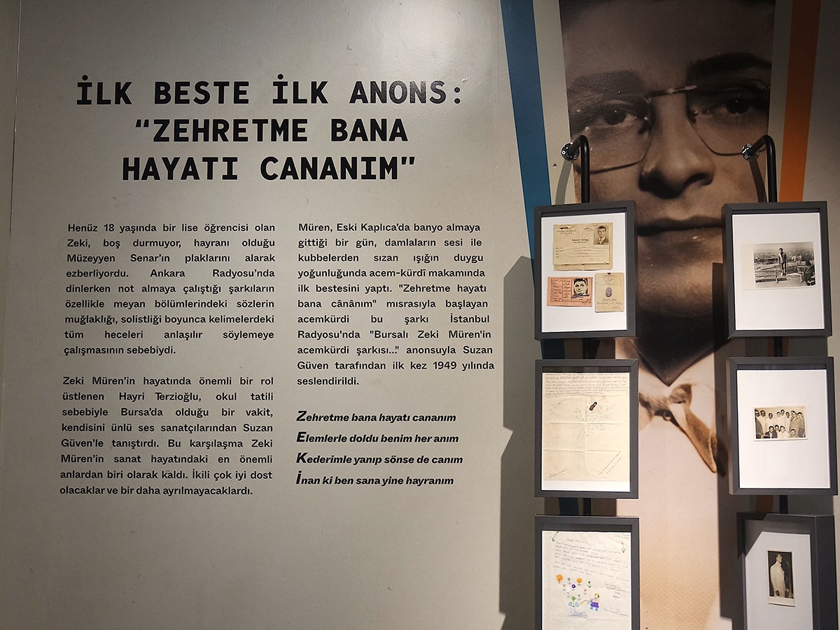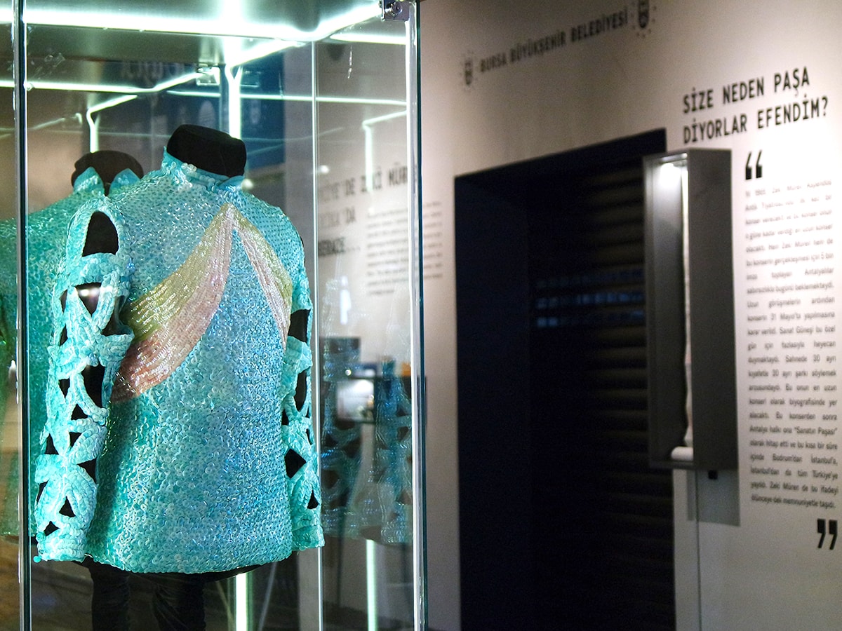 “Burada biriktirdiği birçok anı var. Biz sergide önce sanatçı kişiliğiyle ve bir Bursalı olarak Zeki Müren’i anlattık. Bursa’yla bağını vurguladık, daha sonra onun sanat hayatında nasıl ilerlediğini, ne kademelerden geçtiğini ve aslında bize ne kattığını anlattık. Biliyorsunuz ki Zeki Müren, Türk sanat musikisine iz bırakan bir sanatçı. Aslında biz onun hiç bilmediğimiz yönlerini de vurguladık. Mesela ilk T sahne, podyum sahneyi gerçekleştiren ve sahnesinde kullanılan kişi Zeki Müren çünkü ‘sanatçı toplumla iç içe olmalıdır’ diyor ve böyle bir T sahne yapıyor ve halkla daha iç içe daha yakın bir sahne düzeni alıyor.”
